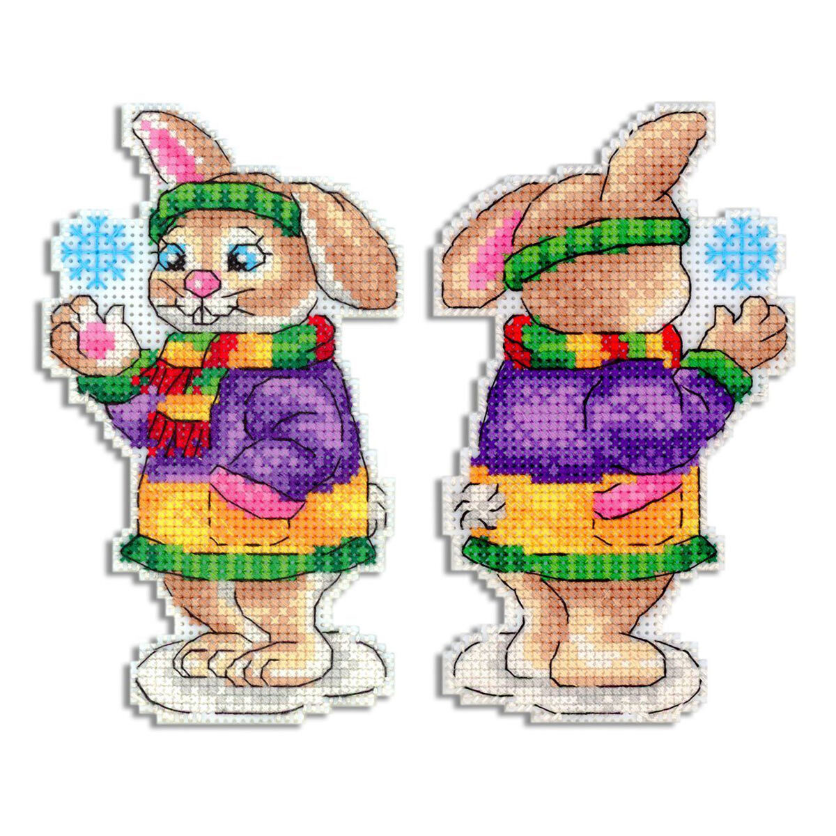 Набор для вышивания нитками МП Студия, на пластиковой канве Зайка со снежинкой 8х13см