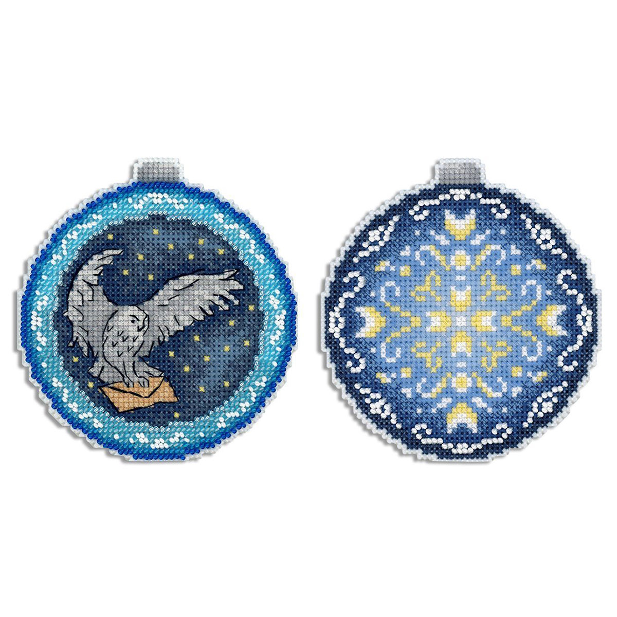 Набор для вышивания нитками МП Студия Р-962, на пластиковой канве Новогодний шар. Крылатый почтальон, 11х10 см