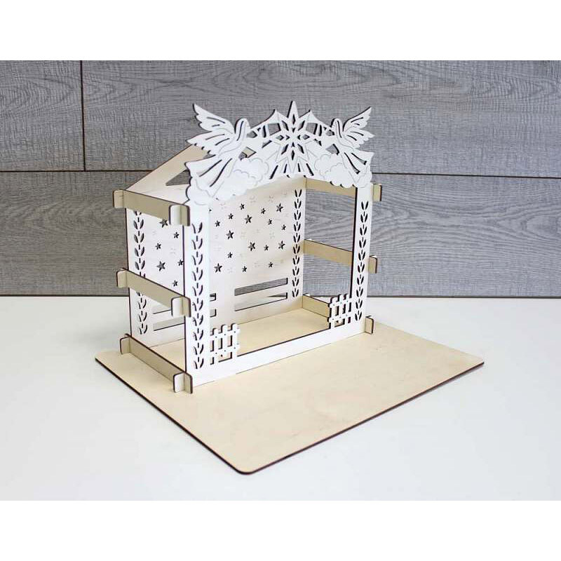 Соберите вышитые фигурки на пластиковой канве из коллекции 'Рождественский Вертеп' от бренда МП Студия и разместите их на подставке. Подставка изготовлена из березовой фанеры и потребует сборки. Основа из фанеры не требует обязательной обработки, но при желании отдельные детали можно предварительно покрыть лаком или расписать акриловыми красками. Внимание: чтобы не повредить роспись, дождитесь, пока покрытие полностью высохнет! Состав: фанера 3 мм. Размер подставки в собранном виде: 37х30х30 см.