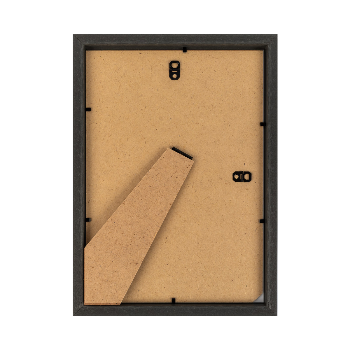 У рамки твердый задник из ДВП с ножкой. Горизонтальный и вертикальный подвесы.