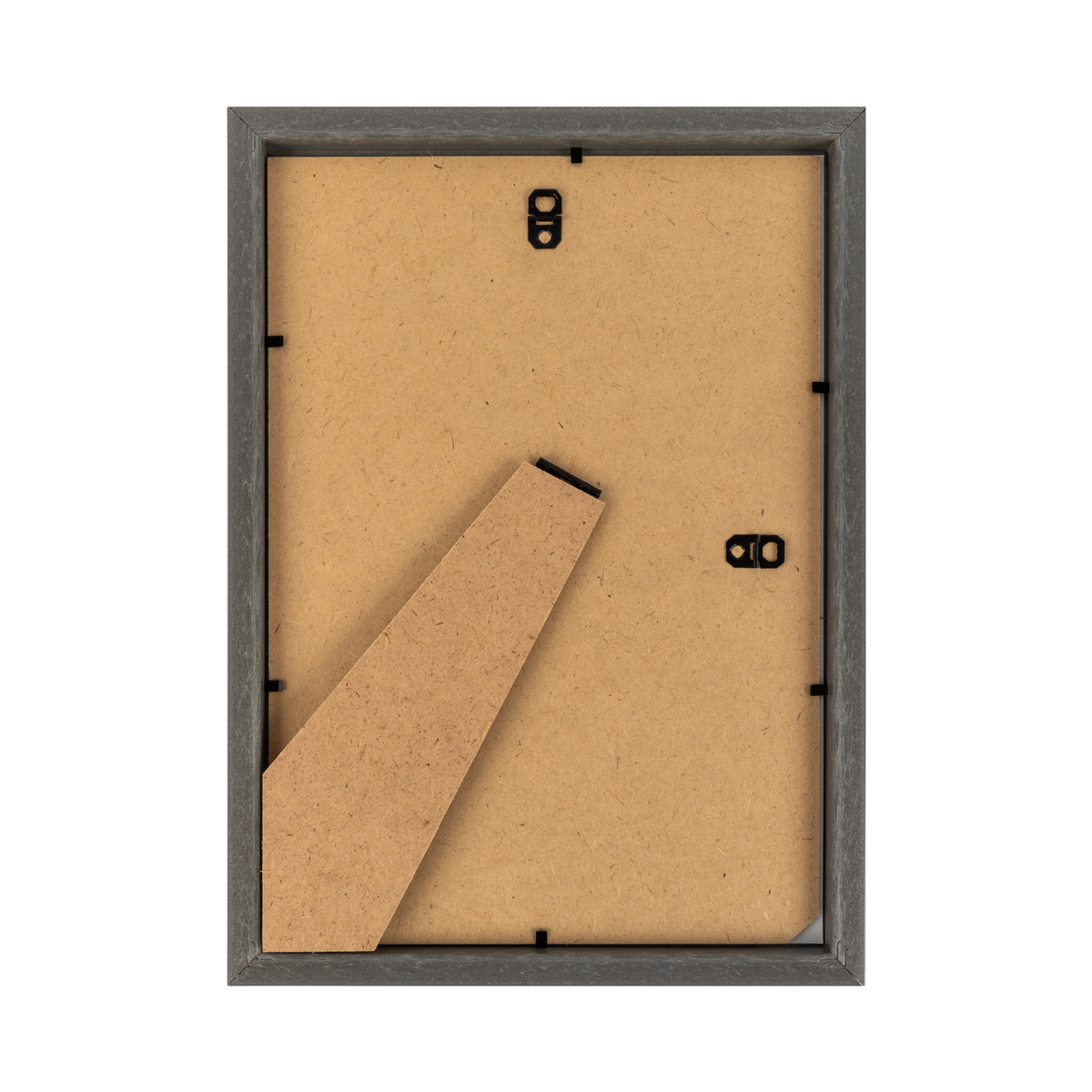 У рамки твердый задник из ДВП с ножкой. Горизонтальный и вертикальный подвесы.