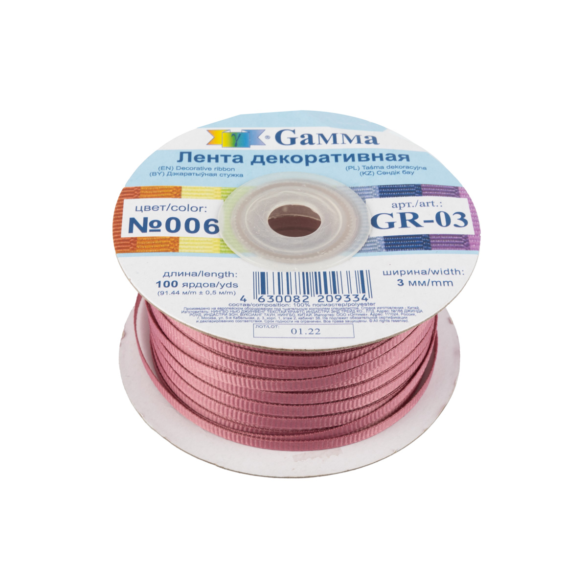 Лента репсовая (в рубчик) _3.0 мм / 91.44 метра, 006 розовато-лиловый, Gamma GR-03