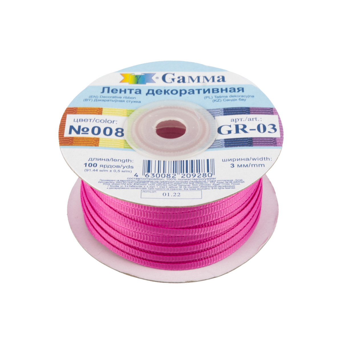 Лента репсовая (в рубчик) _3.0 мм / 91.44 метра, 008 садовая роза, Gamma GR-03