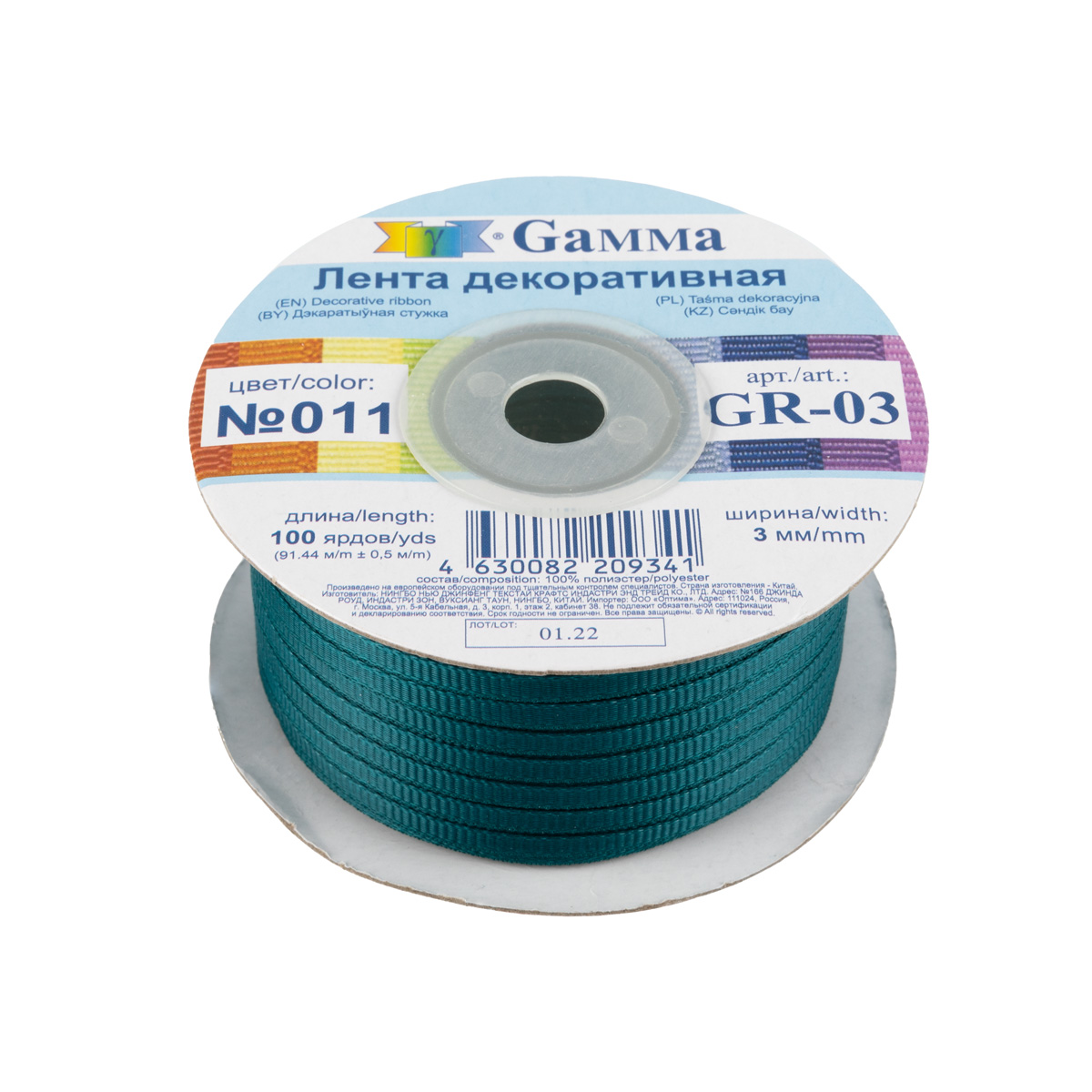 Лента репсовая (в рубчик) _3.0 мм / 91.44 метра, 011 т.зеленый, Gamma GR-03