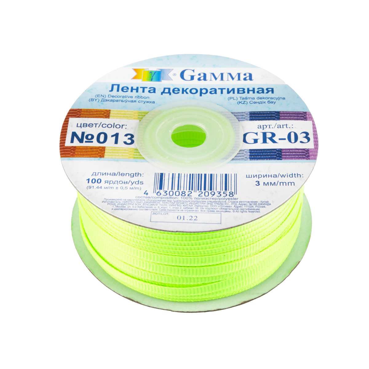 Лента репсовая (в рубчик) _3.0 мм / 91.44 метра, 013 лайм, Gamma GR-03