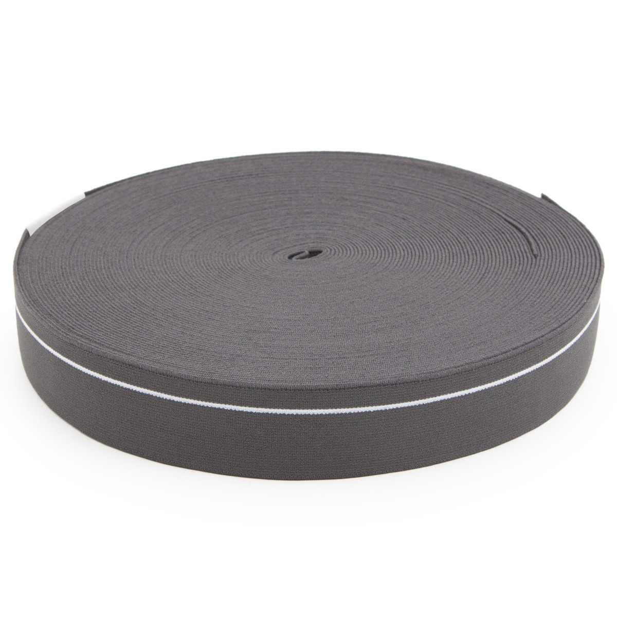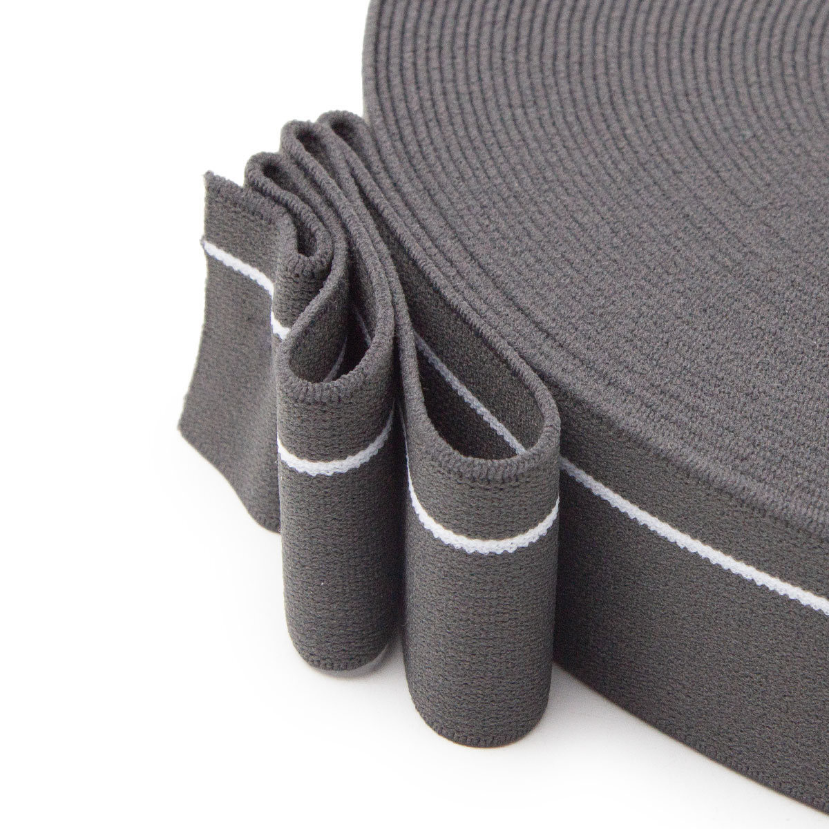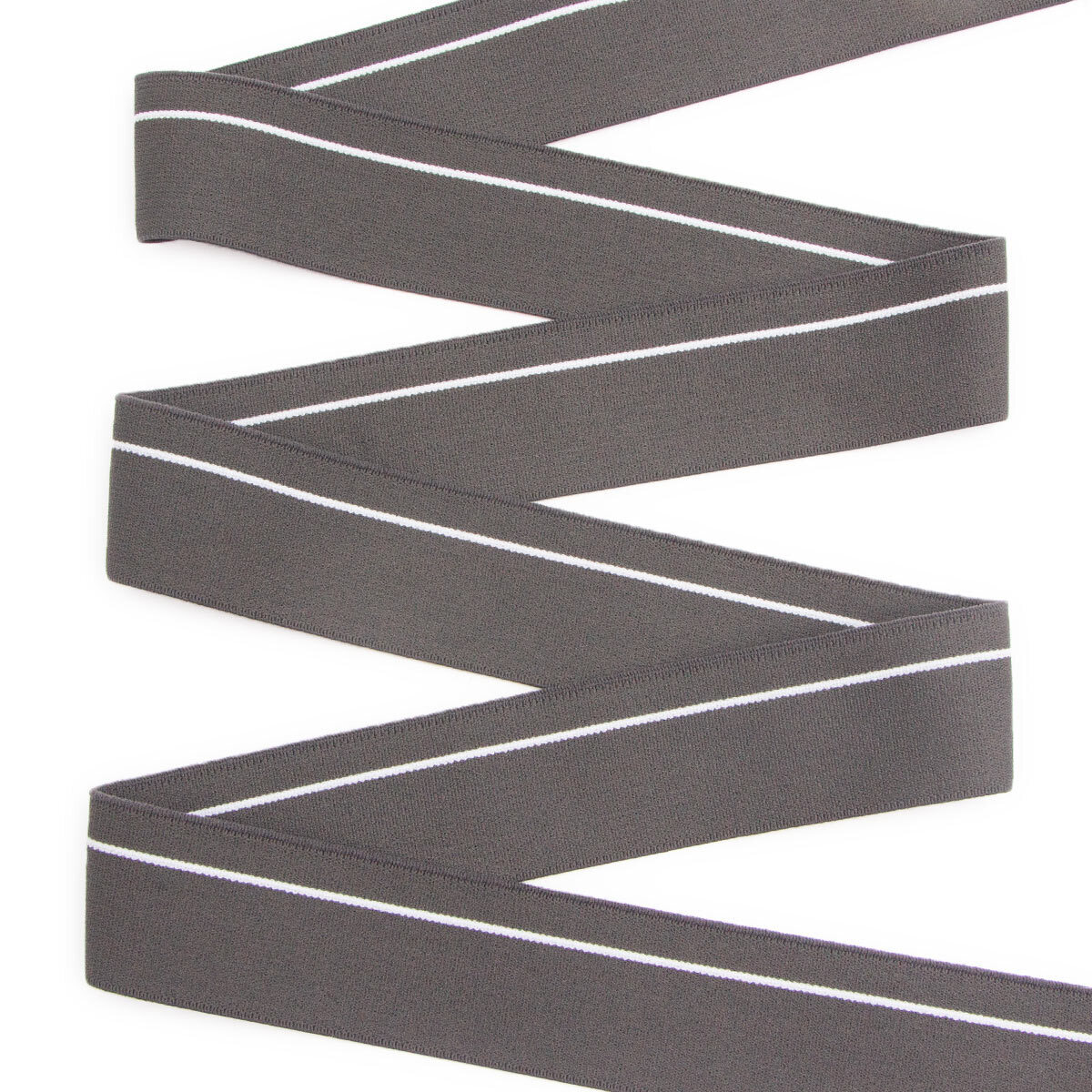 Резинка для мужских трусов и боксеров 35.0 мм / 25 метров, тканая мягкая, 24 г/м, т.серый/белый полоса