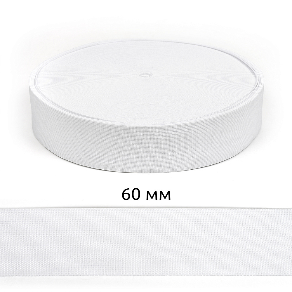 Резинка тканая 60.0 мм / 25 метров, белый, А