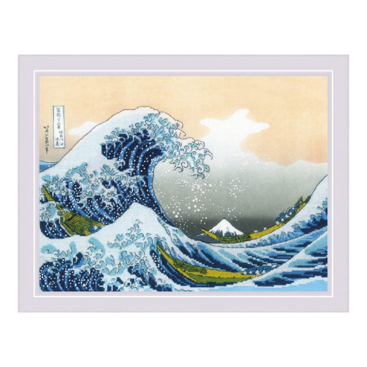 Набор для вышивания крестом Риолис РТ-0100, Большая волна в Канагаве по мотивам гравюры К. Хокусая 40х30 см