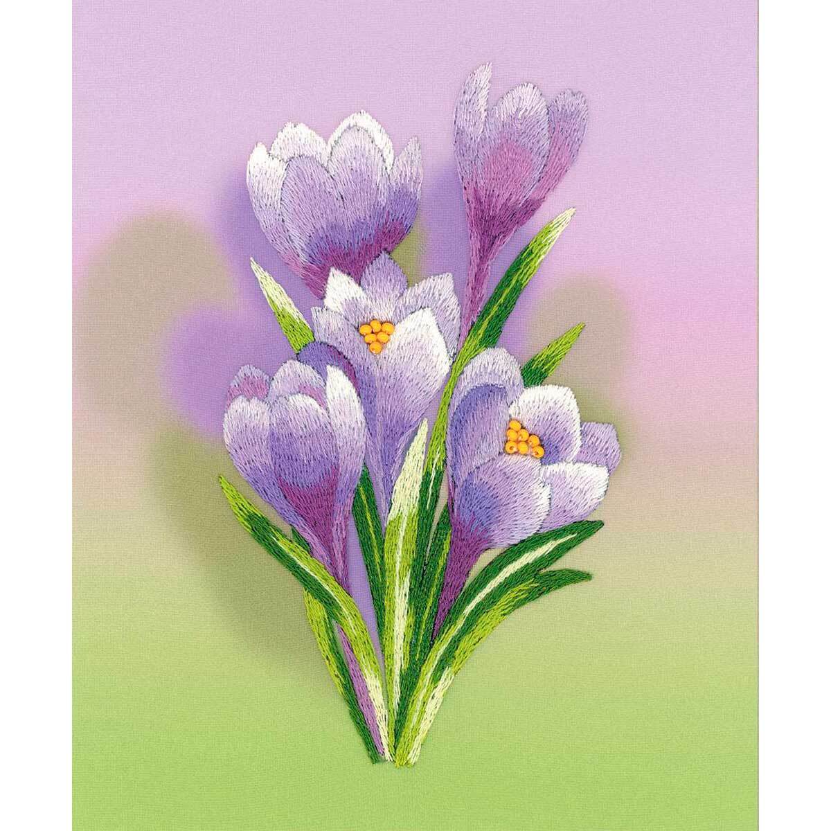 Набор для вышивания нитками Риолис, Частичная вышивка Риолис Крокусы. Гладь 13х16см