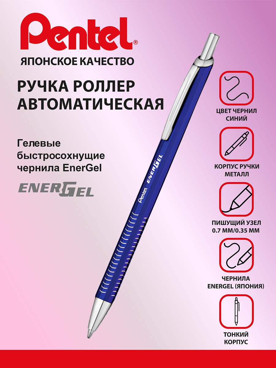Ручка гелевая Energel Metal ⌀0.7 мм, GB цвет чернил: синий, Pentel BL447CC GB