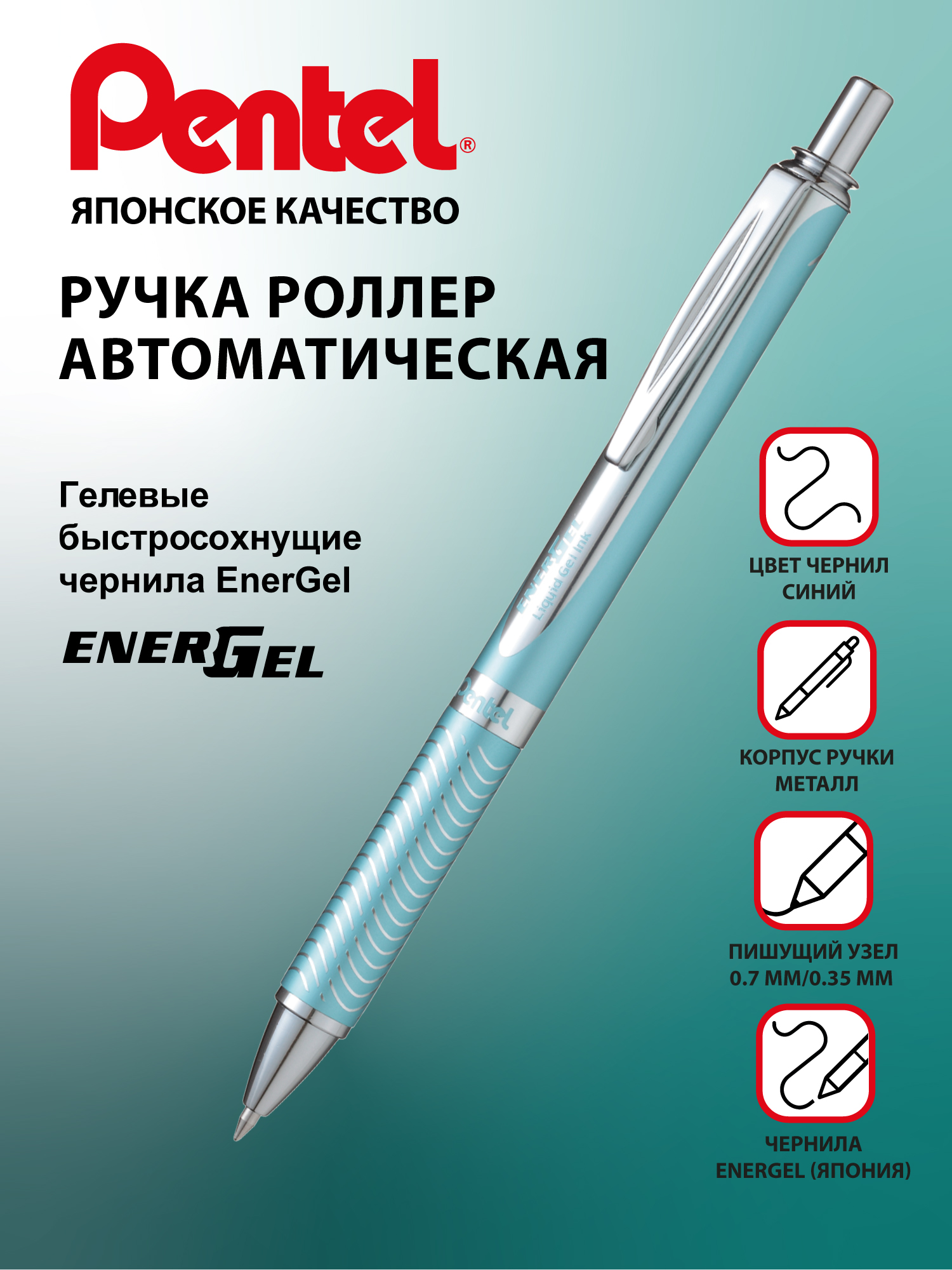 Ручка гелевая Energel Metal ⌀0.7 мм, TB цвет чернил: синий, Pentel BL407CS TB