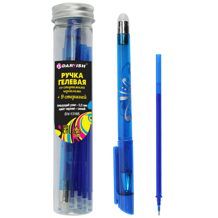 Ручка гелевая синяя со стираемыми чернилами + 9 стержней, DV-13105