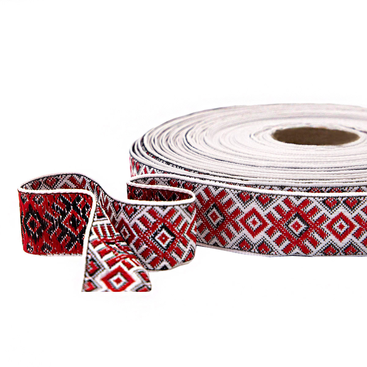 Лента (тесьма) жаккардовая 24.0 мм / 25±1 метров, рис. 9474, С1852Г17 (С3772Г17) белый/красный