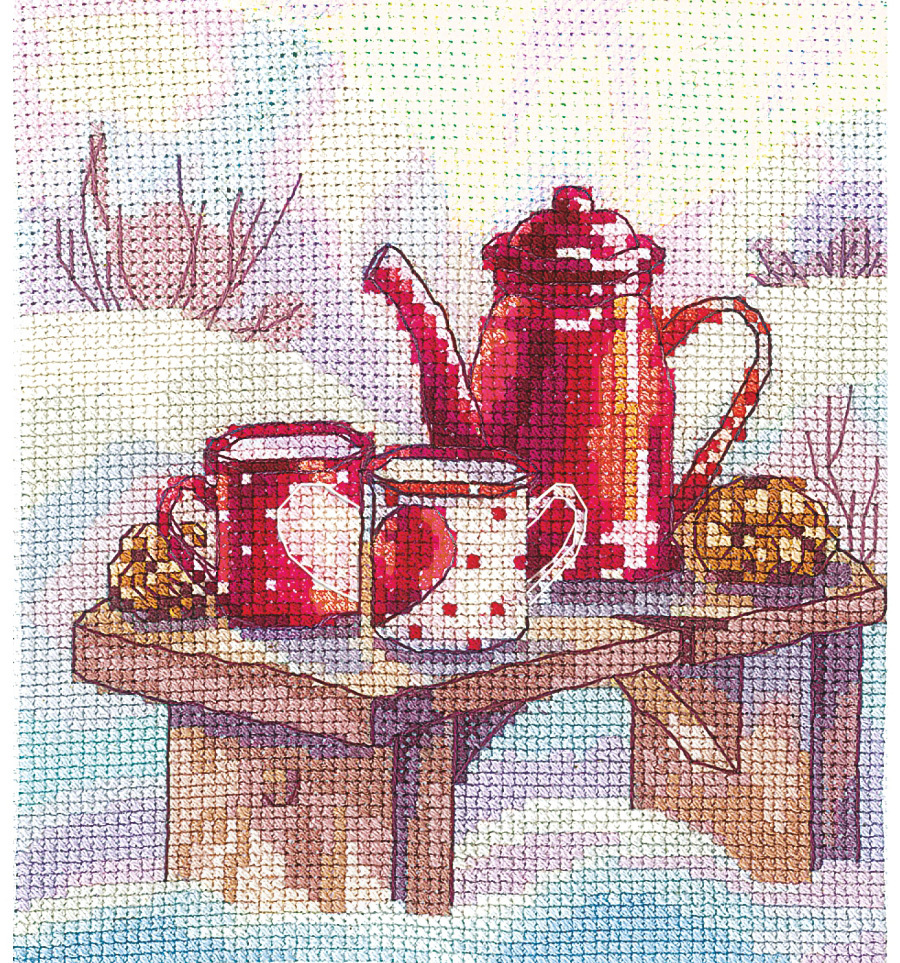 Зимняя серия вышивок с горячим ароматным чаем отлично подойдет в подарок любителям посидеть у камина с чашечкой эрл грея и для тех, кто предпочитает пить вкусный чай с лесными ягодами прямо на морозе, грея руки об яркий бок своей чашки.