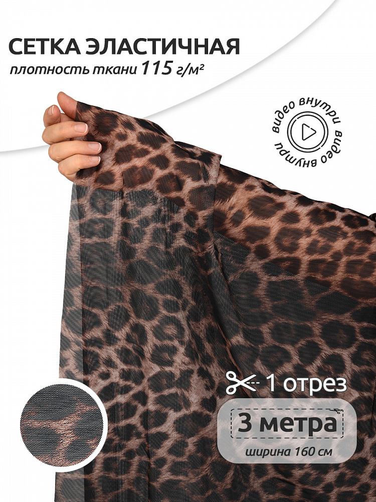 Сетка бельевая эластичная 115 г/м², шир.160 см / 3 метра, принт Леопард TBY.025816