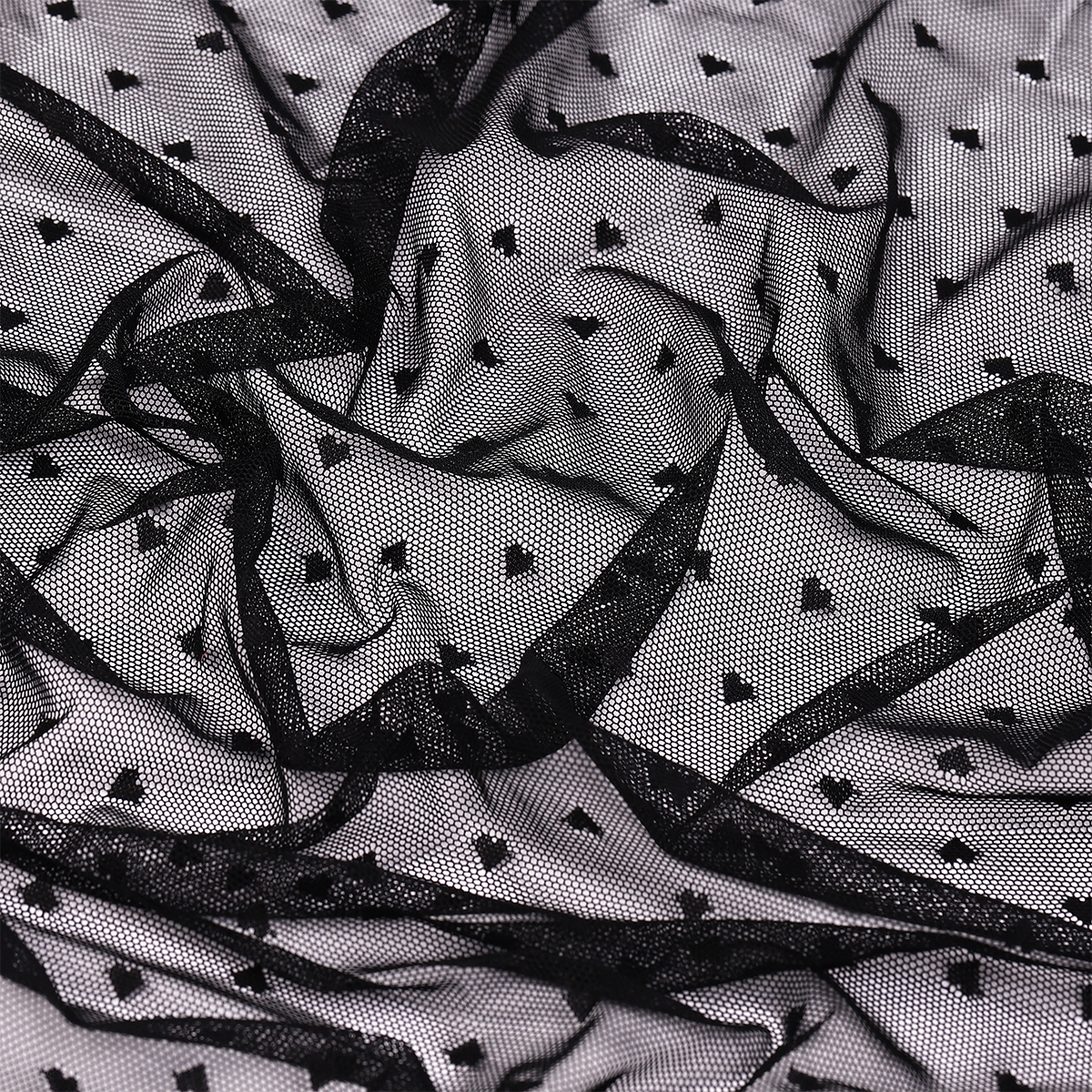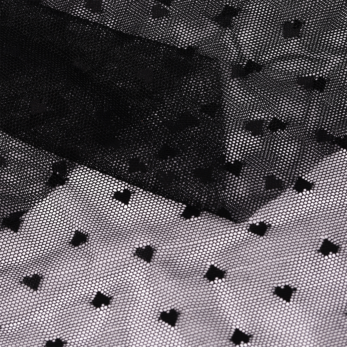 Тонкая эластичная сетка с сердечками. Очень качественная, мягкая, приятная на ощупь. Такую сетку можно использовать как для дублирования неэластичной сетки, кружева и вышивки на сетке, так и для пошива деликатного, просвечивающегося нижнего белья, домашней одежды, нарядных платьев с длинным рукавом. Сетка прекрасно драпируется.