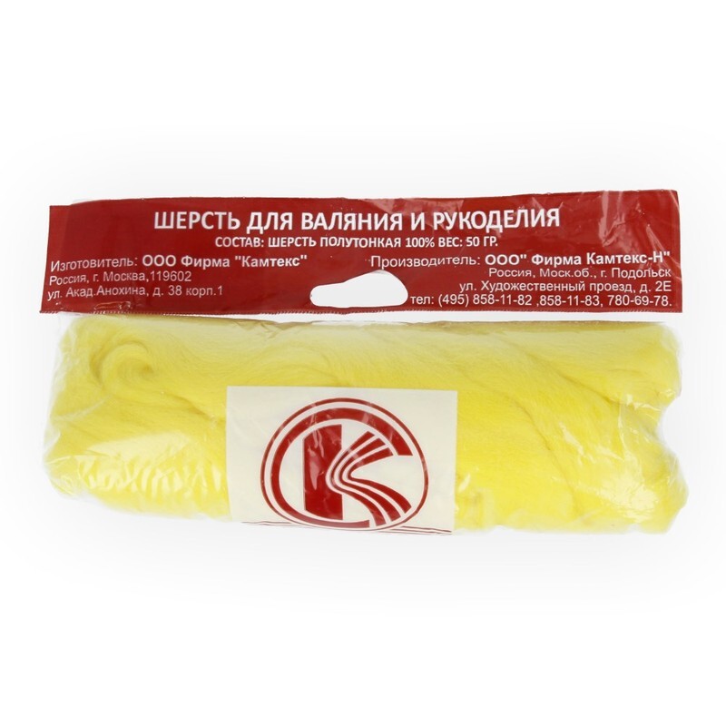 Шерсть для валяния Камтекс п/тонкая 1х50 г, (26-28 мкр), 029 яркий лимон