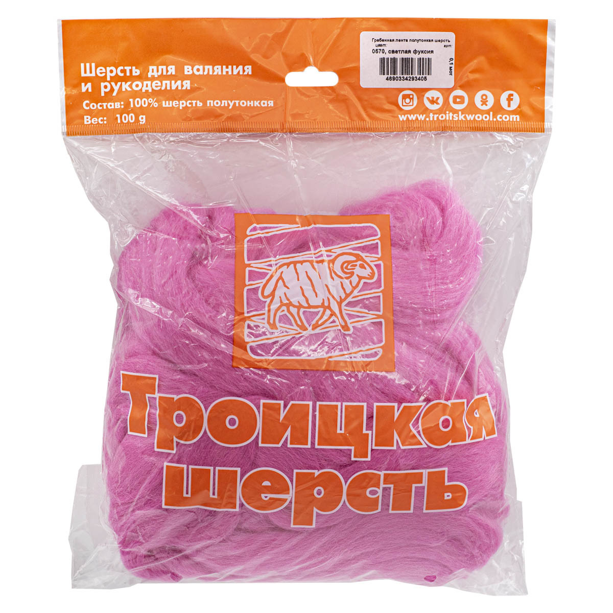 Шерсть для валяния Троицкая п/тонкая 1х100 г (до 29 мкр), 0570 светлая фуксия