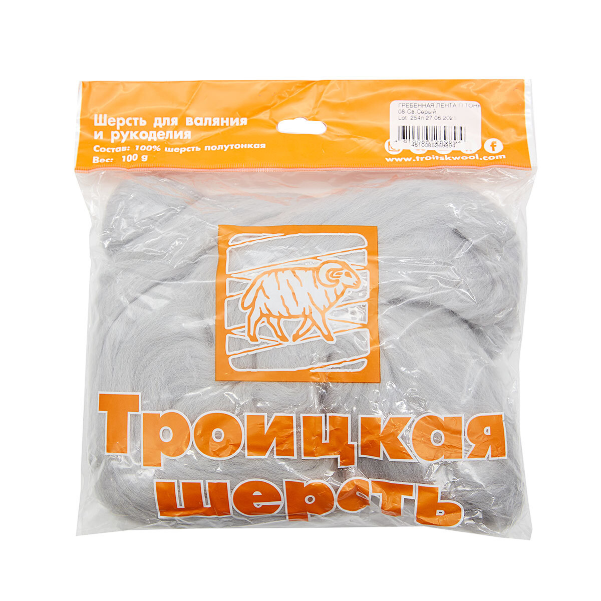 Шерсть для валяния Троицкая п/тонкая 1х100 г (до 29 мкр), 08 св.серый