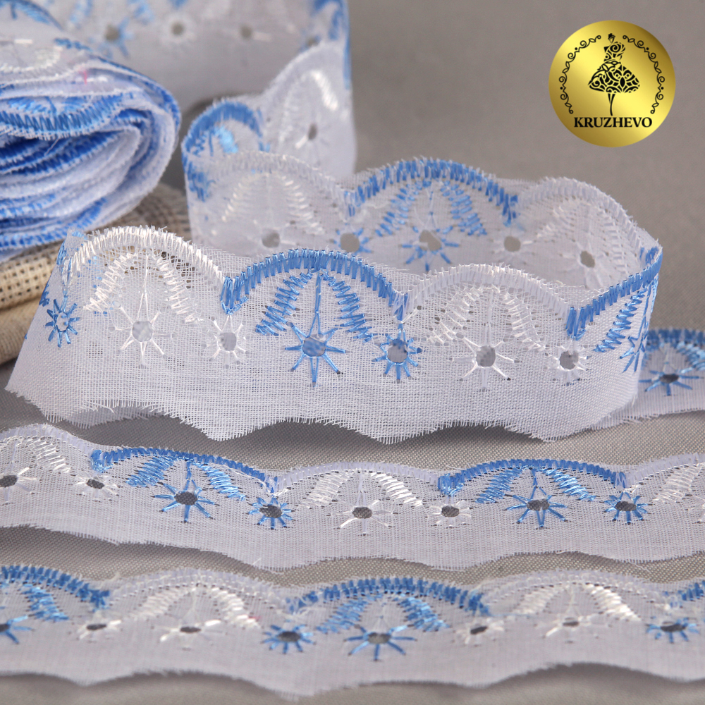 Кружево шитьё 20 мм, диз. 307, цв.101/182 голубой 100% п/э, уп. 13.71 м, Kruzhevo