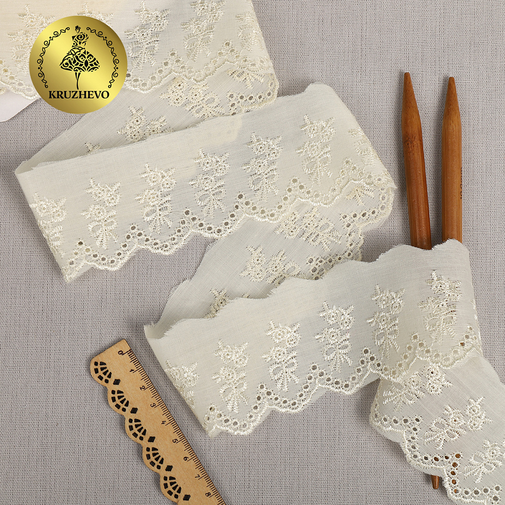 Кружево шитьё 55 мм, цв.002 молочный, хлопок, уп. 13.71 м, Kruzhevo