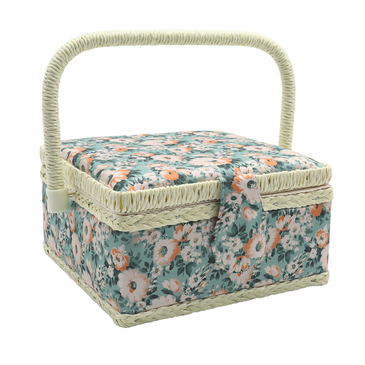 Шкатулка декоративная для рукоделия - это настоящая находка для каждого, кто любит творить своими руками. Она станет вашим верным помощником в организации материалов, инструментов и аксессуаров для шитья, вязания, вышивания, скрапбукинга или любого другого вида рукоделия. Если вы собираетесь на курсы кройки и шитья или отправляетесь в творческое путешествие - просто возьмите с собой легкую и вместительную шкатулку. Она не только освободит ваши руки, но и позволит сохранить все необходимое в порядке. Прямоугольная шкатулка c практичной магнитной застежкой понравится всем, кто ценит функциональность и эстетику. Внутреннее пространство шкатулки продумано до мелочей. Извлекаемая пластмассовая вставка с отделениями позволяет разделить ваши принадлежности по группам: иглы, пуговицы, маркировочные карандаши, катушки ниток – все найдет свое место. Но это еще не все! С нижней стороны крышки шкатулки пришиты игольница и тканевые карманы. В них удобно хранить ножницы, измерительные ленты, линейки, ножницы и другие инструменты, которые всегда должны быть под рукой. Шкатулка обтянута прочной тканью с ярким цветочным принтом. Размер: 19,5x19,5x11 см.