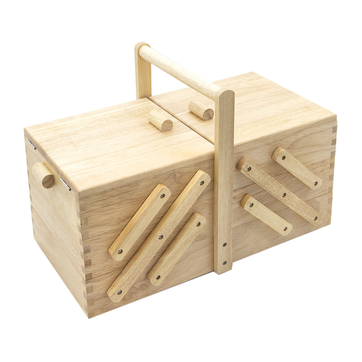Многоярусная шкатулка для рукоделия Prym подходит для хранения различных предметов: игл, ножниц, пряжи и других материалов. Особенности: – Корпус выполнен из каучукового дерева, которое отличается высокой прочностью и не портится от влаги. – Крышка обтянута тканью, при желании ее можно использовать как игольницу. – Имеет трехъярусную систему. Ярусы поднимаются по принципу 'гармошки'. Раскройте ярусы шкатулки, чтобы сразу иметь доступ ко всему содержимому. – В нижних ярусах поместятся ножницы, вязальные спицы, моток пряжи, а верхние подойдут для различных мелких деталей. – Размер ячеек в верхних ярусах легко изменить благодаря съемным разделителям (прилагаются в комплекте). – Шкатулку удобно взять с собой благодаря большой ручке. Размер: длина 43 см, ширина 21 см, высота 18 см, высота вместе с ручкой 28 см.