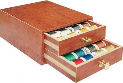 Шкатулка Metallic №40Наполнение шкатулки: - 44 х METALLIC №40 намоткой 200 м. - 2 х 1500 м. Bobbinfil №70 - 1 упаковка игл для металлизированных ниток - Цветовая карта Metallic