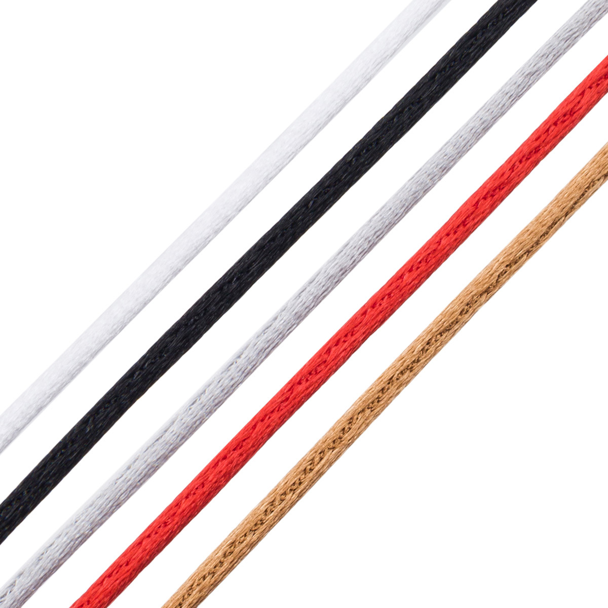 Шнур атласный корсетный ⌀1.0 мм / 5 цветов по 10 метров, черный, белый, золотой, красный, серый