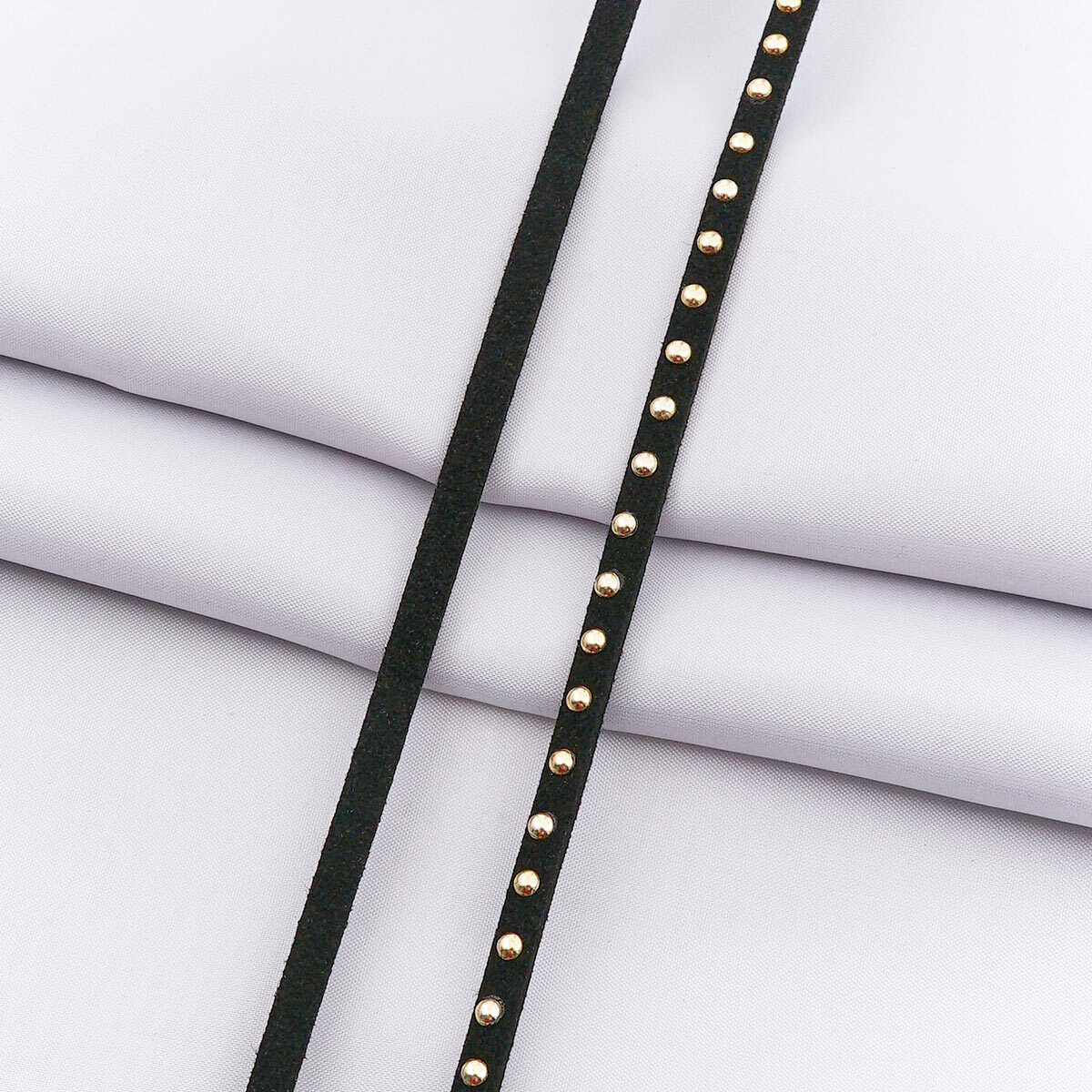 Шнур плоский замша искусственная 5.0 мм / 16 метров, с зол. клепками, цв. черный, 25385