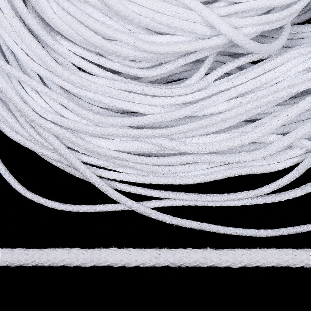 Шнур круглый х/б ⌀5.0 мм / 100 метров, с наполнителем, 001 белый