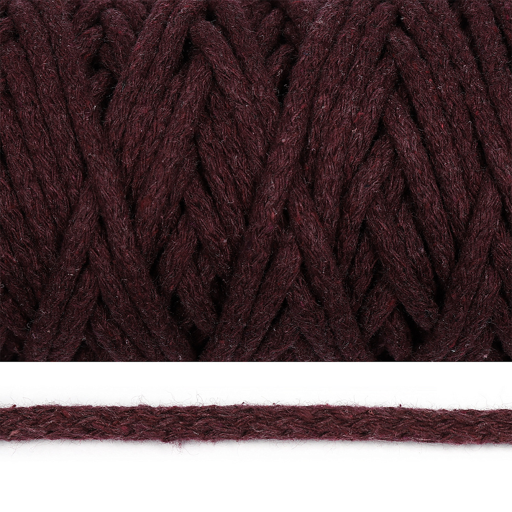 Шнур круглый х/б ⌀6.0 мм / 50 метров, 043Т бордовый