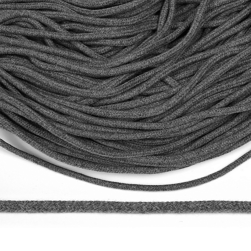 Шнур круглый х/б ⌀8.0 мм / 100 метров, с наполнителем, 030 т.серый