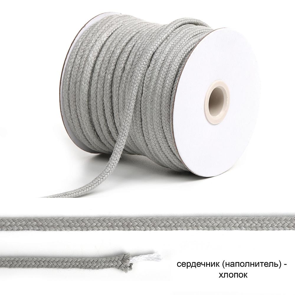 Шнур круглый х/б ⌀5.5 мм / 25 метров, с наполнителем, 310 св.серый