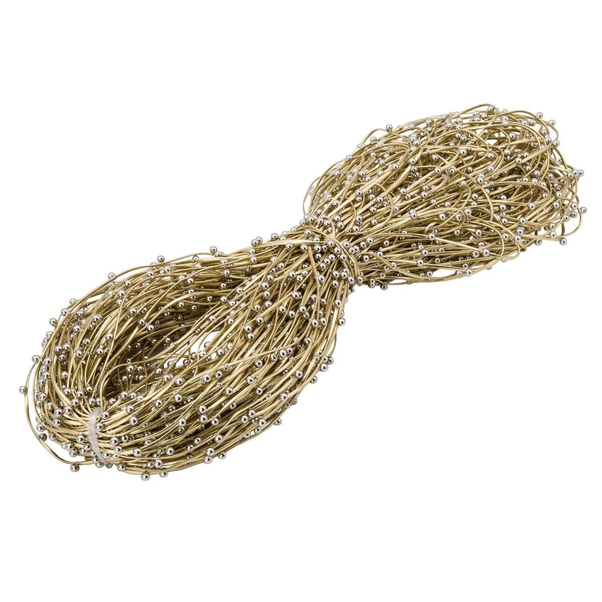 Шнур отделочный искусственная кожа с бусинами ⌀2.0 мм, / 100 метров, 04 золото