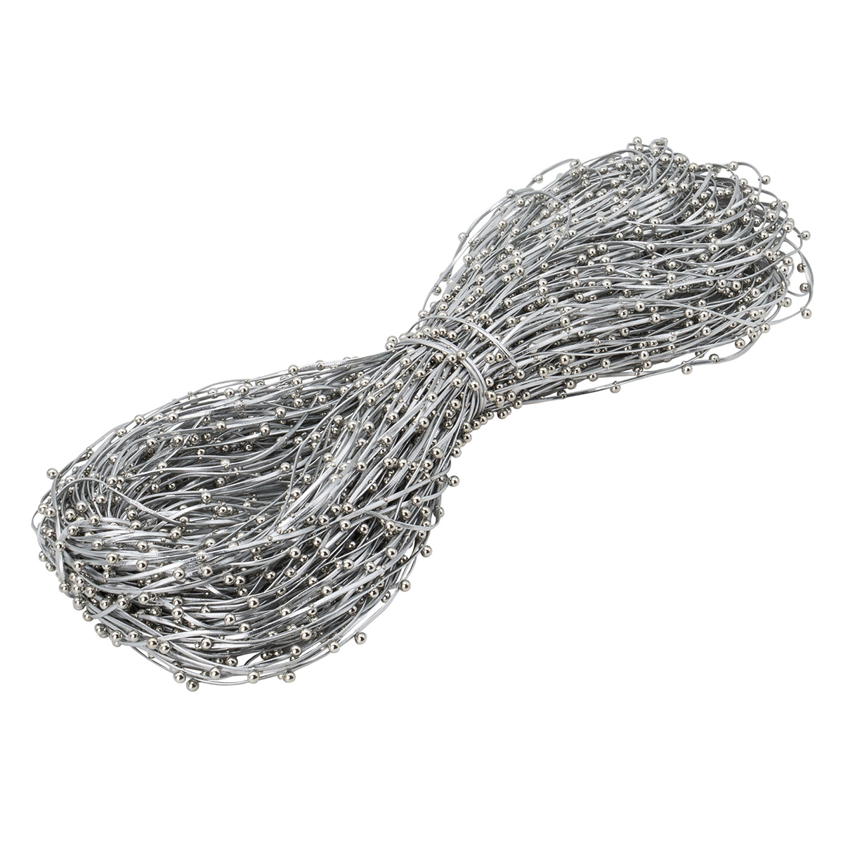 Шнур отделочный искусственная кожа с бусинами ⌀2.0 мм, / 100 метров, 05 серебро