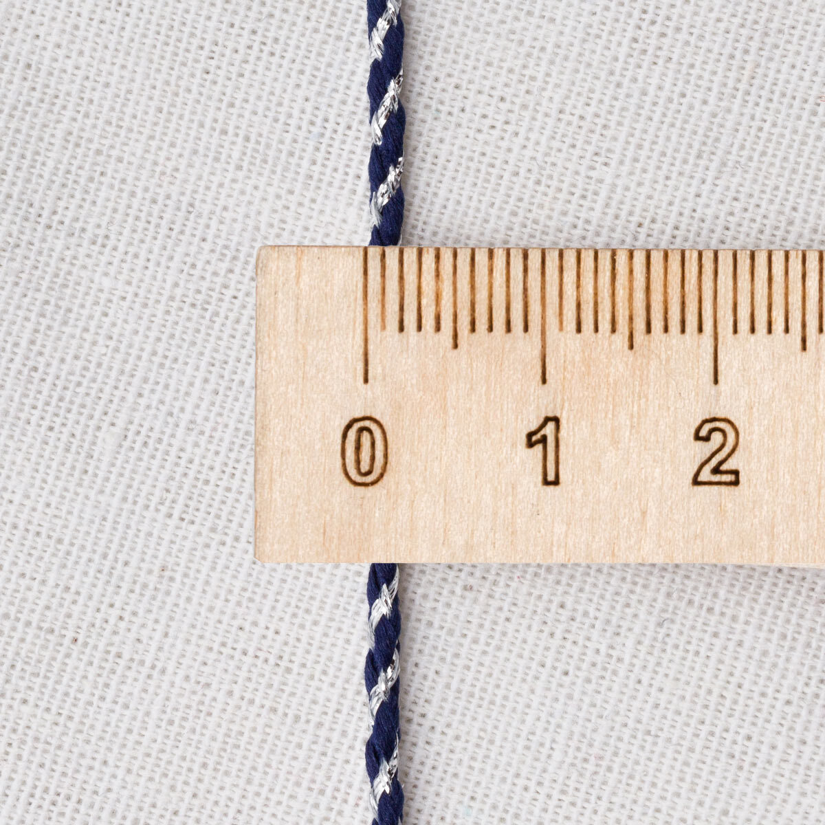 Шнур отделочный с метанитом ⌀3.0 мм / 20м (полиэстер 68%, метанит 32%), синий с серебром, Р2869