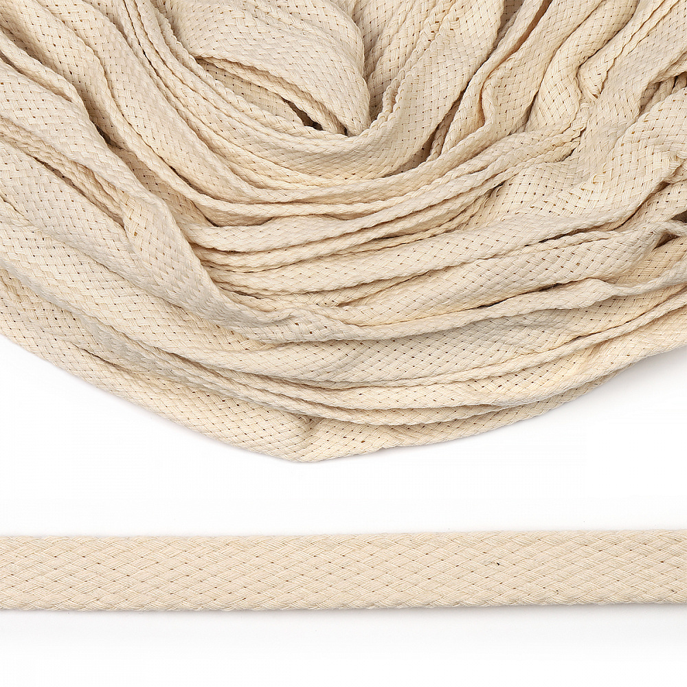 Шнур плоский плетеный х/б ⌀12.0 мм / 50 метров, турецкое плетение цв.002 молочный
