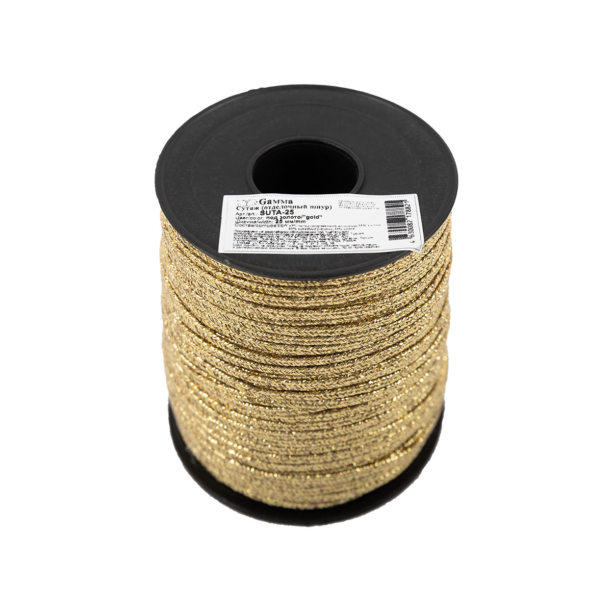 Шнур сутажный под металл ⌀2.5 мм / 100 метров, золото, Gamma SUTA-25