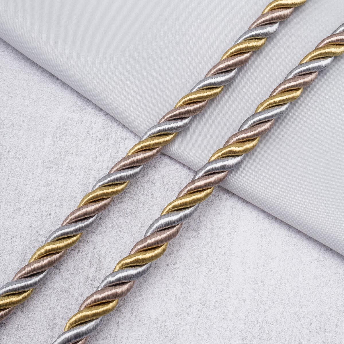 Шнур витой (мебельный) ⌀8.0 мм / 25 метров, 2-цветный, 93333 бежевый/серебро/золото