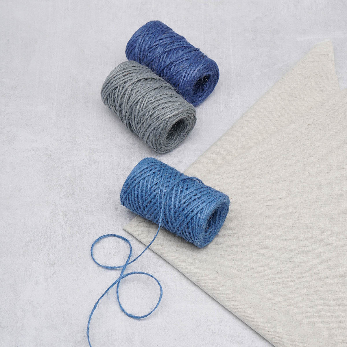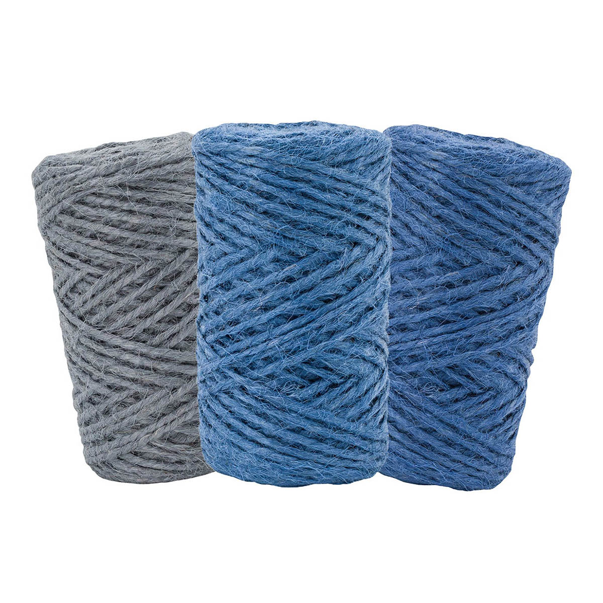Шпагат джутовый ⌀1.4 мм / 50 метров (50 г), 2-ниточный, 1200 текс, евробобина, 3 шт, ассорти 2 (синий, голубой, серый)