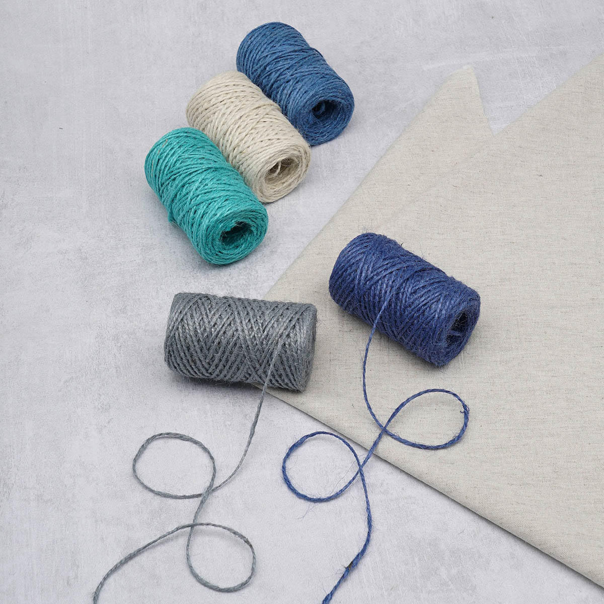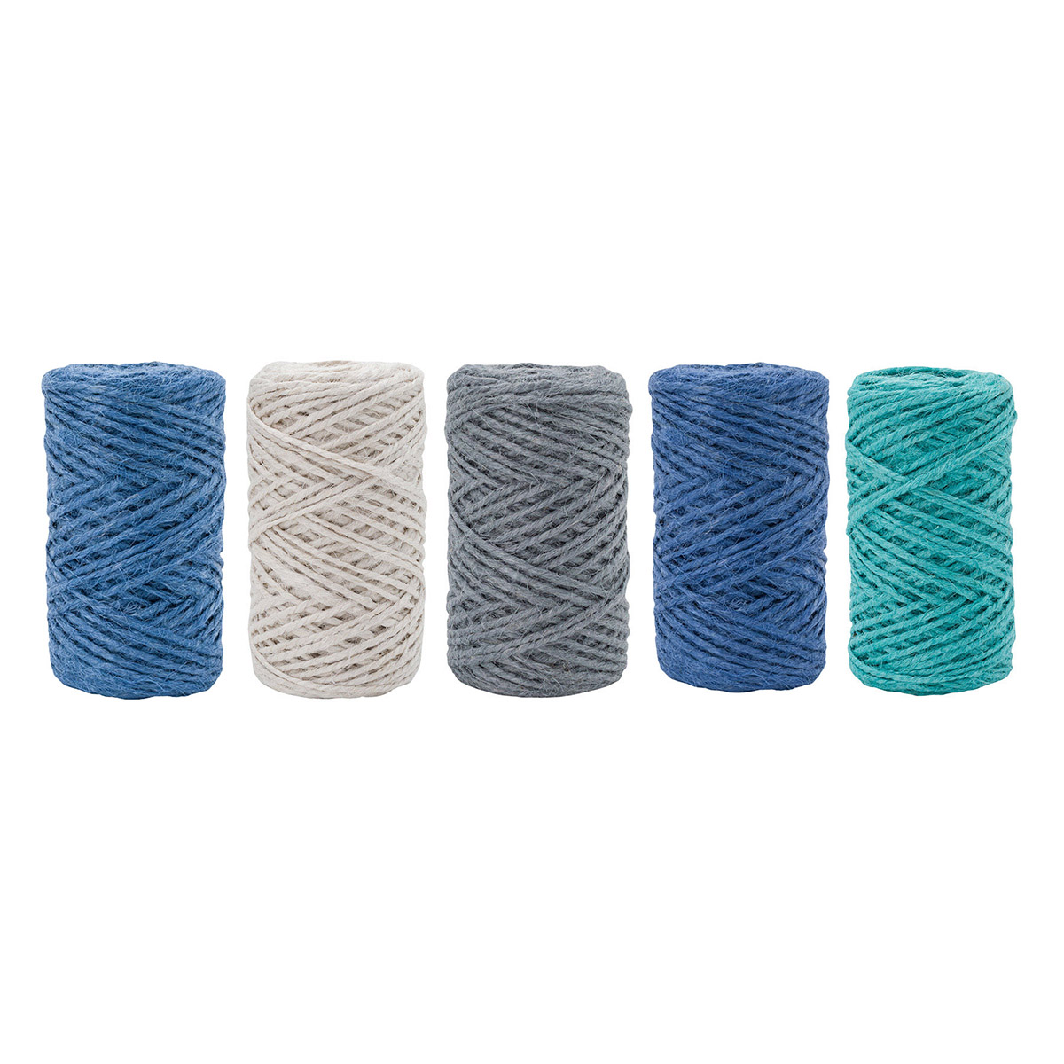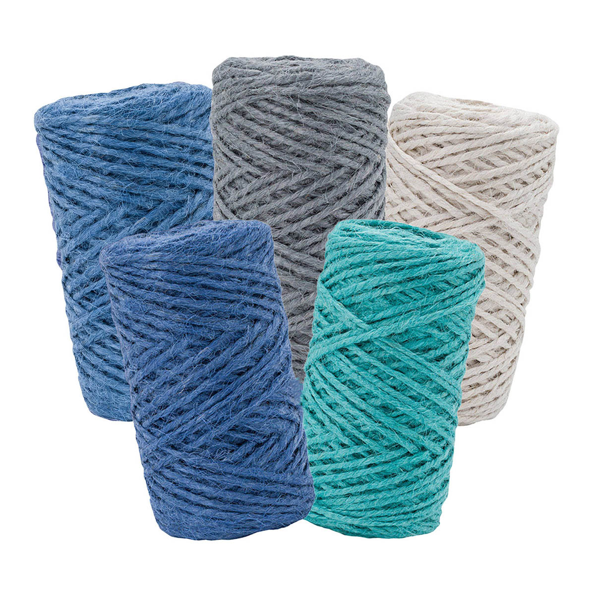 Шпагат джутовый ⌀1.4 мм / 50 метров (50 г), 2-ниточный, 1200 текс, евробобина, 5 шт, ассорти 1 (бирюзовый, синий, голубой, серый, белый)