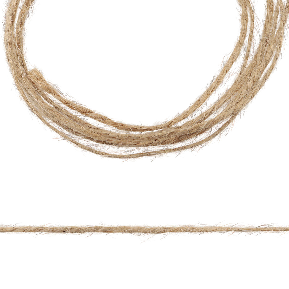 Шпагат крученый 2-ниточный с линейной плотностью 560 текс позволяет завязать тугой и устойчивый узел. Отличный выбор для плетения абажуров в технике макраме, мочалок, ковриков и других поделок в эко-стиле. Шпагат изготовлен из необработанного джутового волокна – оно очень прочное, устойчиво к трению, разрыву, выдерживает перепады температур. Джут хорошо впитывает влагу и при этом не подвержен гниению, поэтому таким шпагатом можно перевязывать мешки, коробки. Пригодится ценителям натуральных материалов: изделия из джута не вредят окружающей среде, легко утилизируются через компостирование или сжигание. Размер: толщина нити 0,6 мм, длина 50 м (89 г). Цвет: натуральный.