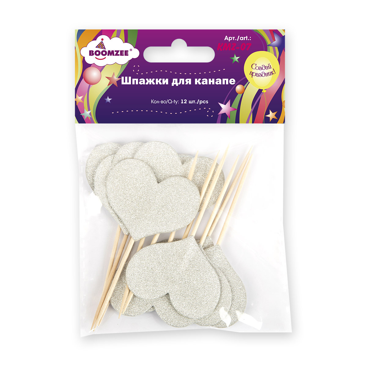 Шпажки для канапе 50 мм, 12 шт, 02-Сердце серебро, Boomzee KMZ-07