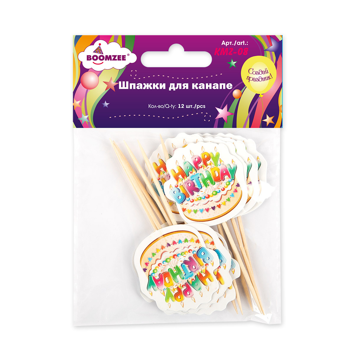 Шпажки для канапе 12 шт, 04-Торт Happy Birthday, Boomzee KMZ-08