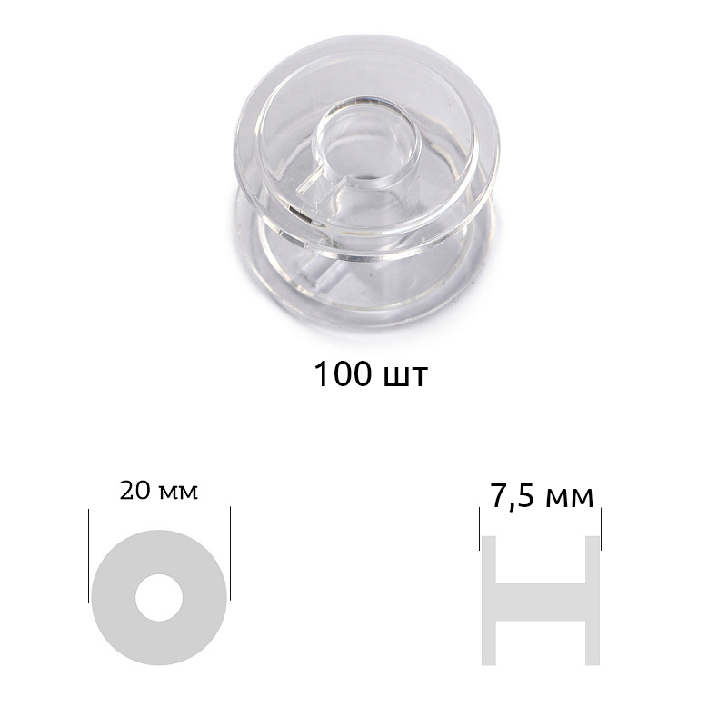 Шпули к бытовой швейной машине с ободком цв. прозрачный пластик, 200 шт