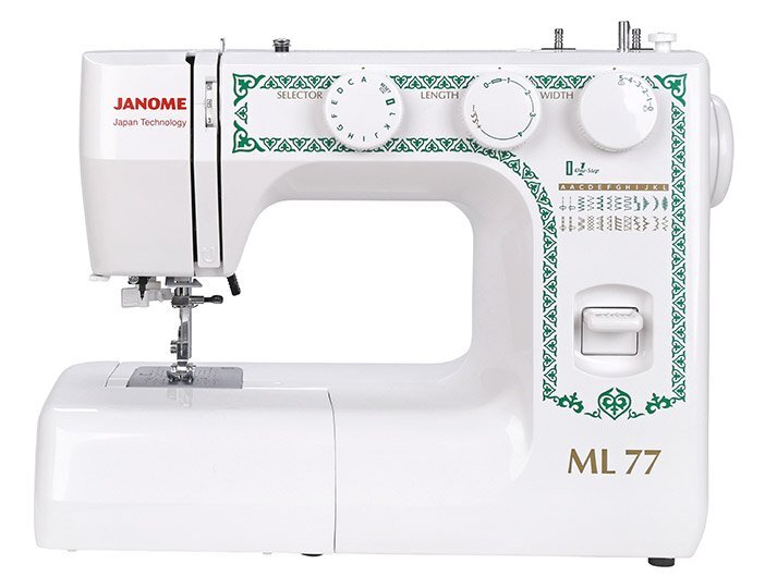 Электромеханическая швейная машина Janome ML 77 отлично подойдет для любых домашних работ. Она имеет 25 разнообразных швейных операций, включая строчки для работы с трикотажем, потайные, оверлочные строчки. Также есть декоративные строчки, которые подойдут для отделки. Петля выполняется в автоматическом режиме за один шаг под размер выбранной пуговицы. Janome ML 77 имеет регулятор ширины зигзага, с помощью которого вы сможете изменить ширину даже при выполнении петли. В данной модели есть встроенный нитевдеватель, чтобы с легкостью вдеть нить в иглу. Для выполнения свободно-ходовой стежки есть переключатель нижнего транспортера подачи ткани. Janome ML 77 - это хороший выбор, как для новичков, так и для любителей шитья.