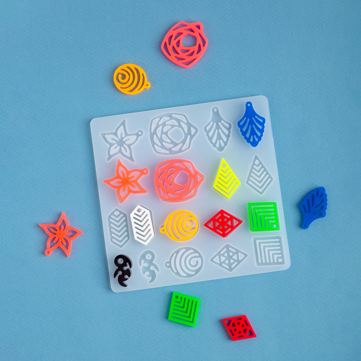 Силиконовая форма арт.SMER-07 используется для создания кулонов, сережек, подвесок и декоративных элементов из эпоксидной смолы.