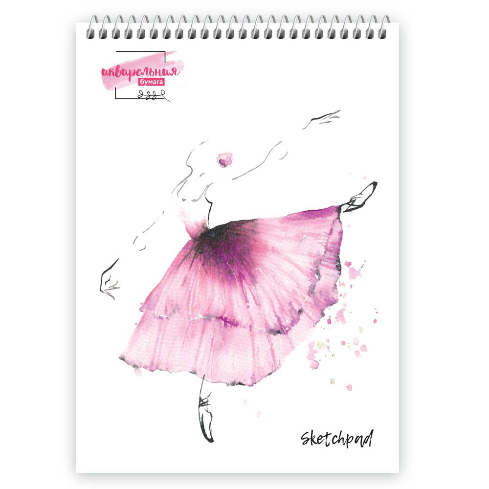 Скетчпад Изостудия с акварельной бумагой 200 г/м², А4 на спирали 20 л, 01-балерина, Аква-колор