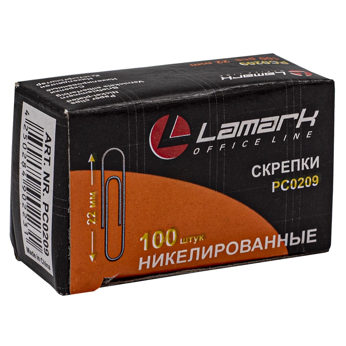 Скрепки ник. 22 мм/100 шт/ круглые, LAMARK209, 10 уп